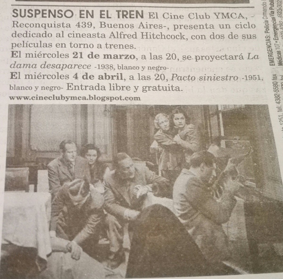 Segunda y última película del ciclo "Hithcock en tren" en el Cineclub YMCA, con la proyección de Pacto siniestro, de Alfred Hitchcock. Será el miércoles 4 de abril a las 20 horas en Reconquista 439, con entrada libre y gratuita.